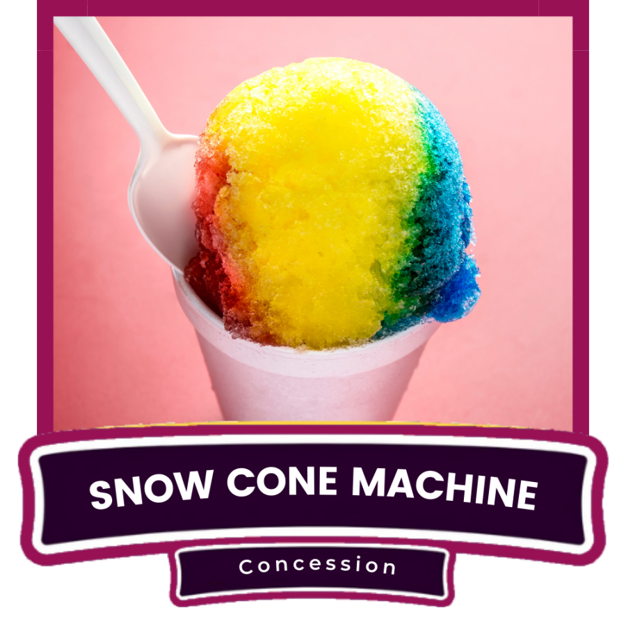 Make your event extra cool with our Snow Cone Machine Rental! Easy to use and perfect for parties, school events, fundraisers, and summer gatherings, our machine quickly shaves ice to create refreshing, fluffy snow cones. Pair it with your favorite flavored syrups like cherry, blue raspberry or grape for a delicious treat that guests of all ages will love. Book today and bring the fun and flavor of a classic snow cone stand to your event!